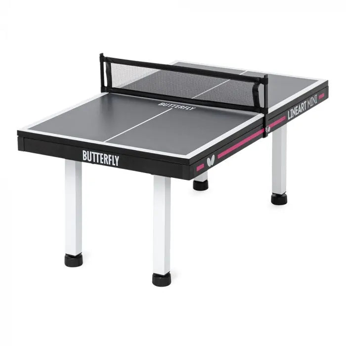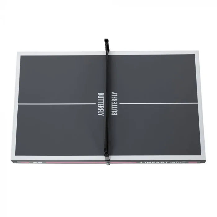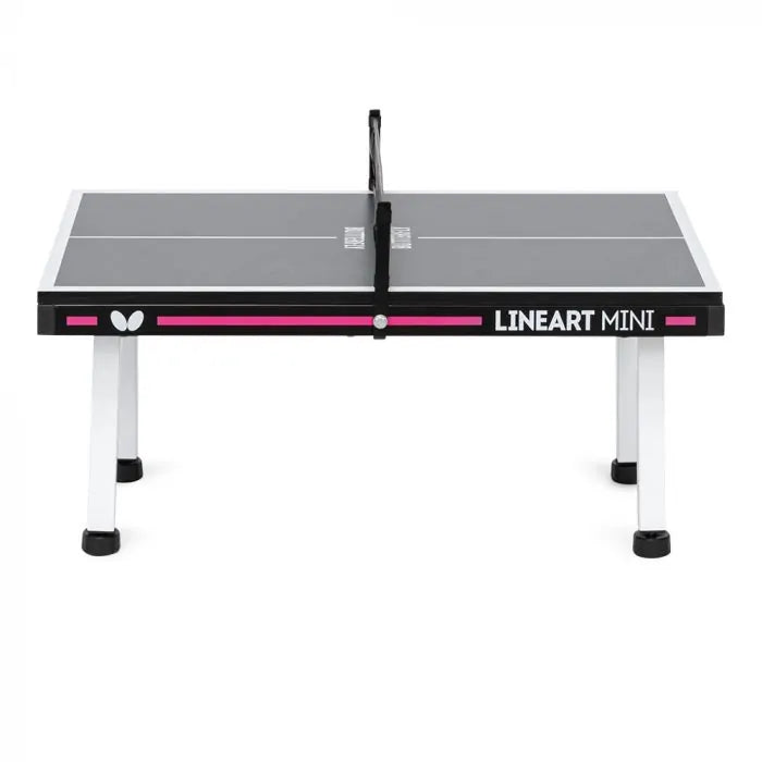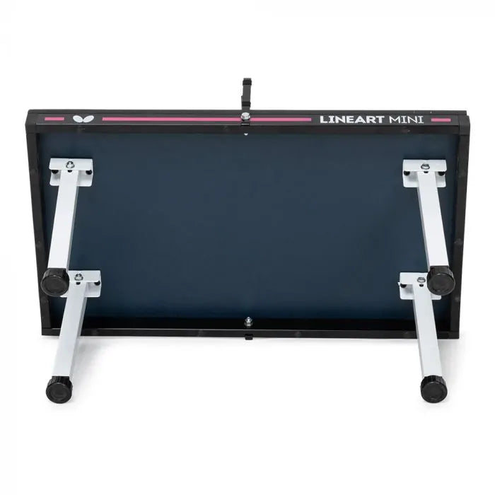 طاولة باترفلاي ميني سهلة الحركة وجاهزة للاستخدام في لمح البصر بمجرد تمديد أرجلها وتثبيت عمود الشبكة. مع طاولة لينيارت ميني، يمكنك حمل تنس الطاولة معك أينما كنت، فهيكلها المتين بإطارها المعدني وسطحها بسمك 12 مم يضمن لك متعة تنس طاولة طويلة الأمد أثناء التنقل. العلبة مرفقة.
