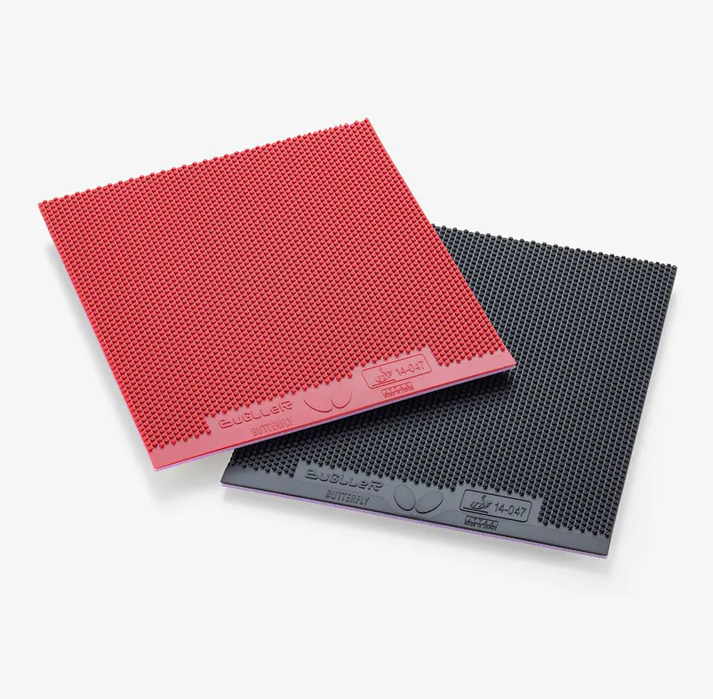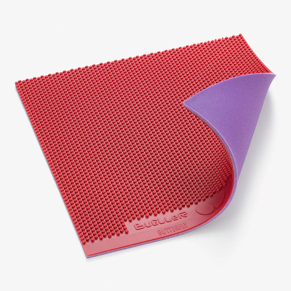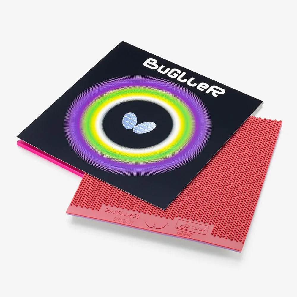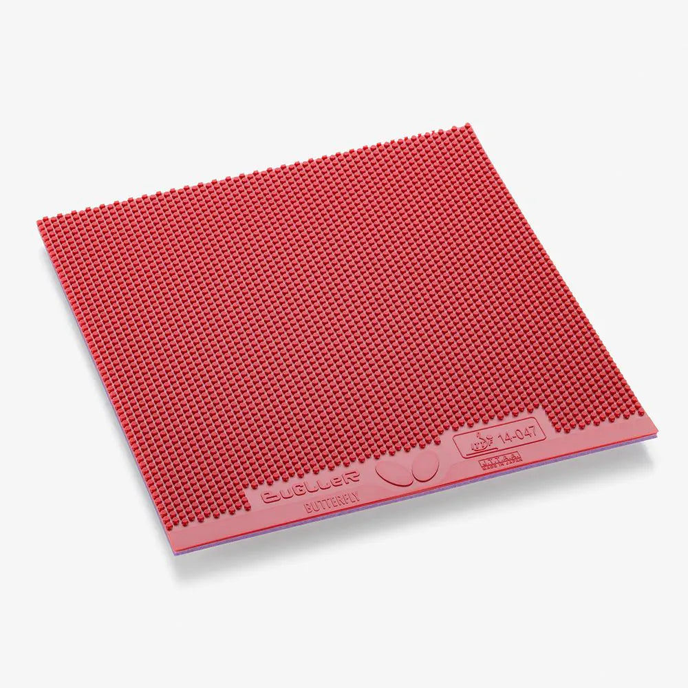 Bugller’s unique combination of a pimple shape designed for large spin variation and Spring Sponge X allow it to produce unpredictable no-spin balls which can disturb the opponent’s rhythm. ’s innovative High Tension Technology enables players using Bugller to create unexpected fast balls as well.