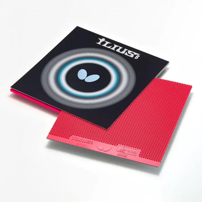 Ilius B is the first long pimpled rubber with “Absorber Sponge Drop” technology developed by . The top sheet is rather hard with pimples whose aspect ratio is at the highest limit permitted. The combination of the top sheet and “Absorber Sponge Drop” provides high performance when playing short over the table, such as chop block. In addition, innovative attacking and defensive play are both possible, making best use of the characteristics of the long pimples, such as a low backhand shots with minimal spin.