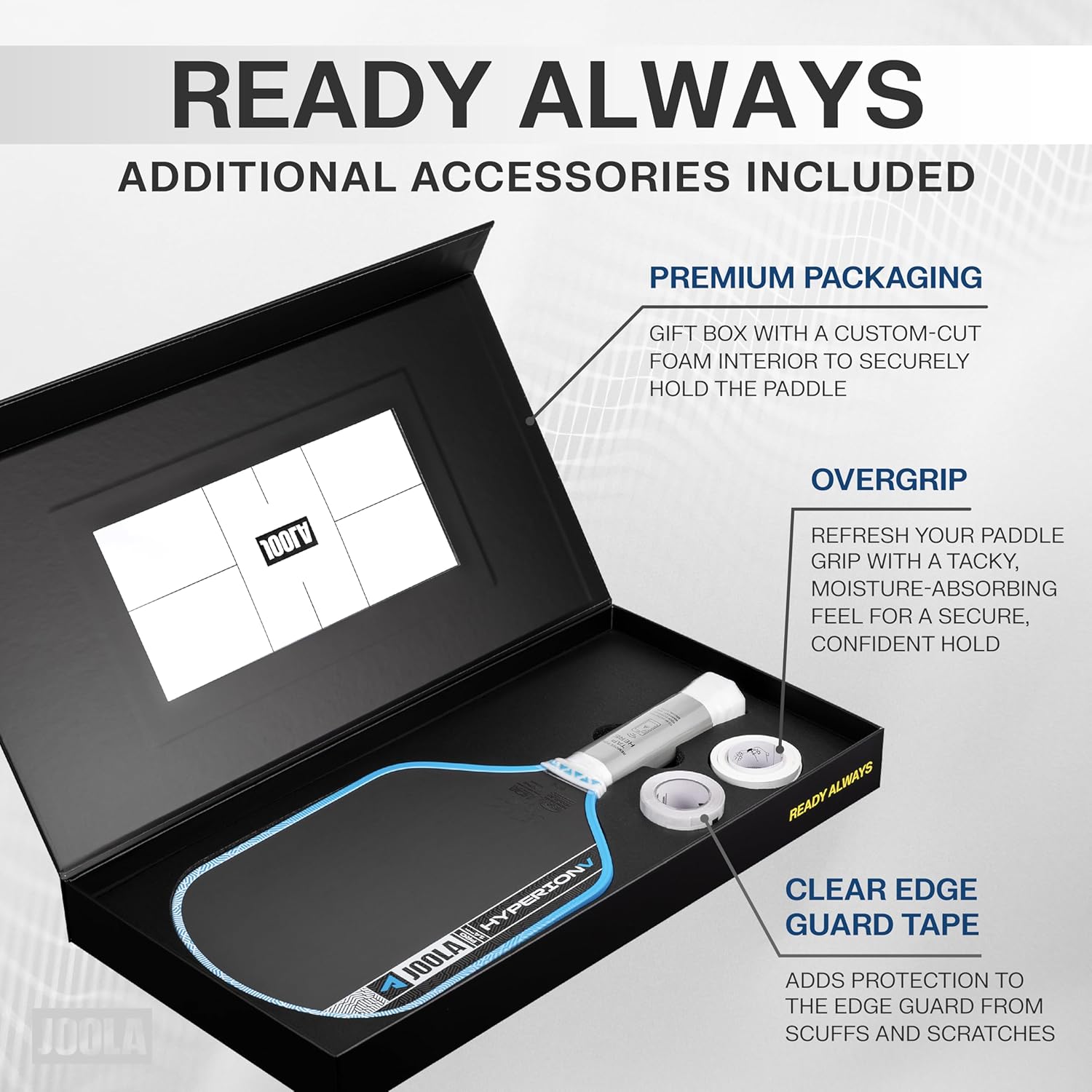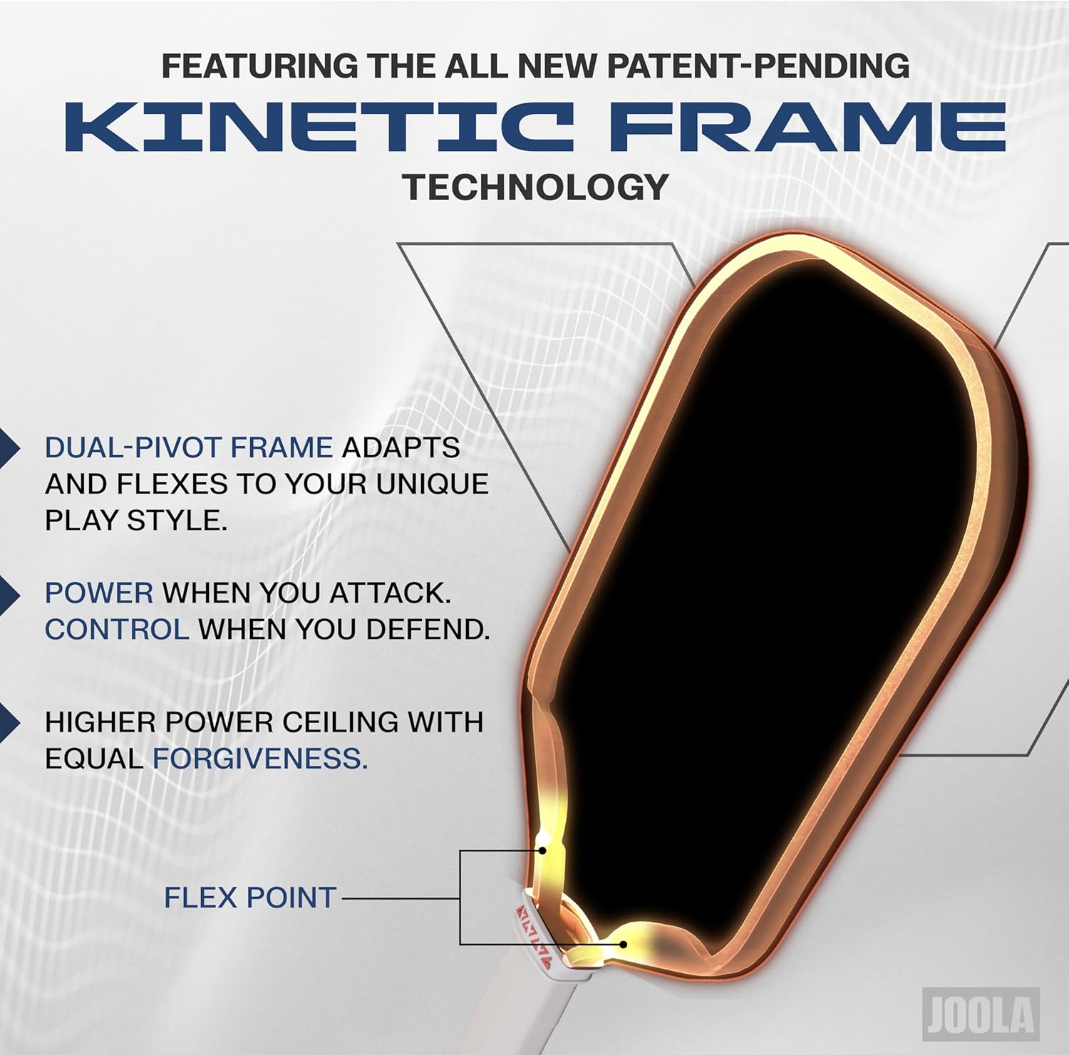 For players who crave hand speed, extended reach, and quick reactions, the Ben Johns Hyperion Pro V features JOOLA’s signature aero-curve shape. Designed to cut through the air more efficiently, the aero dynamic paddle head makes it easier to stay aggressive at the net and cover more court. JOOLA’s patent-pending KineticFrame is integrated into the paddle’s throat, creating a slimmer frame that flexes to store momentum and releases it on impact for improved ball placement. The Hyperion Pro V delivers speed, reach, and precision, all working harmoniously.