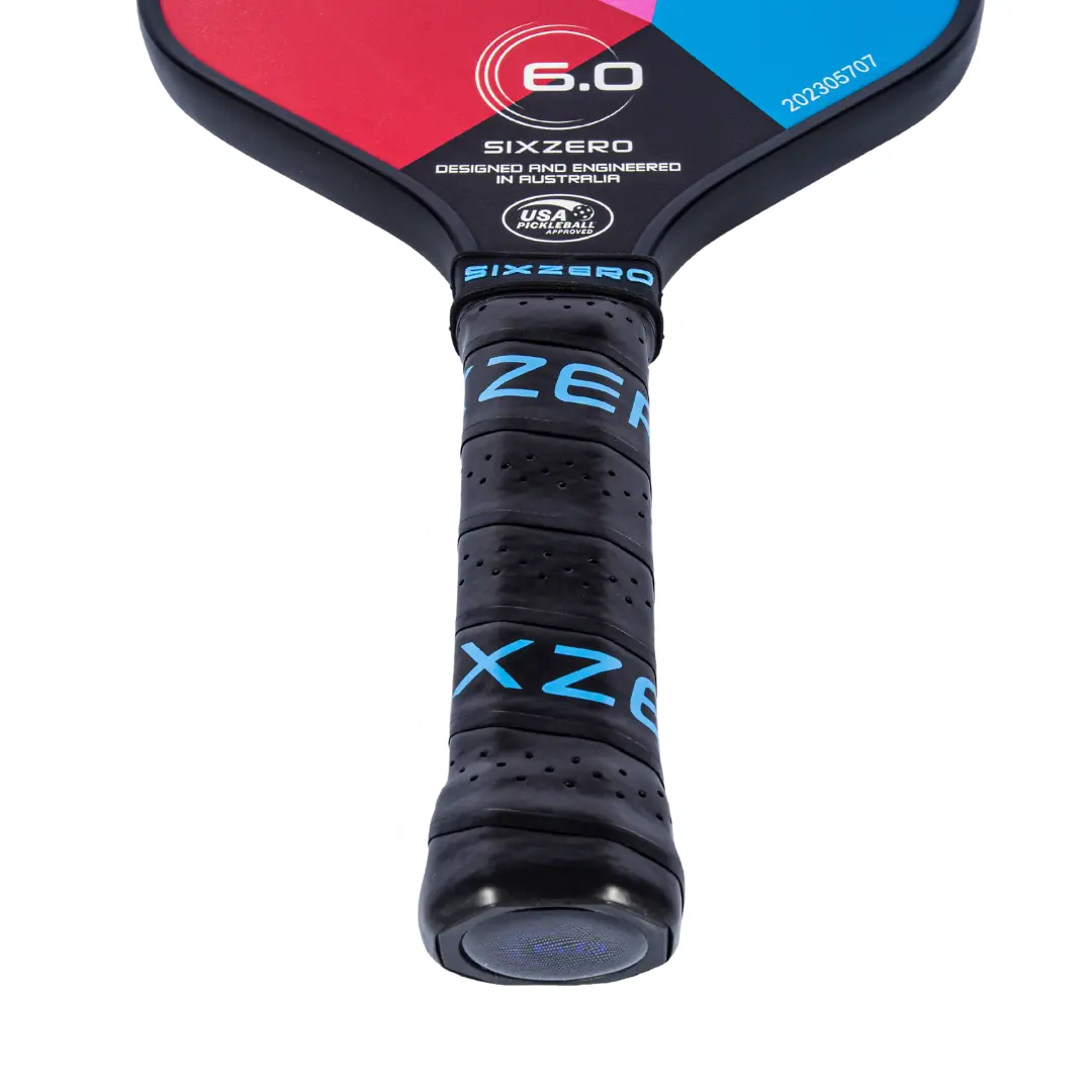 Our 5.6” elongated handle is designed to accommodate two-handed backhand players. Finished with a premium custom perforated leather grip with a 4.25” circumference, it ensures a comfortable hold for hands of all sizes.