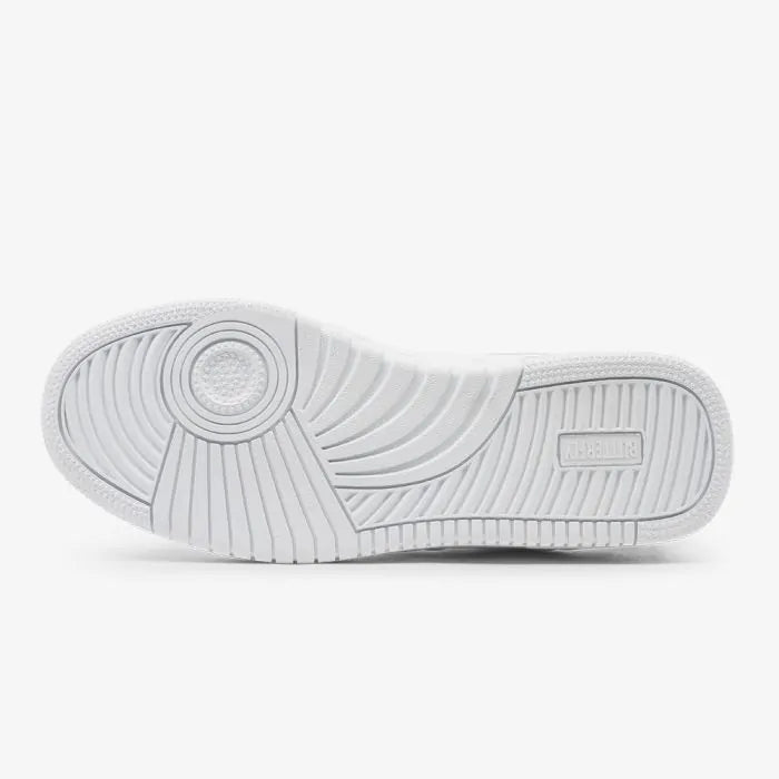 Our sporty all-white sneakers in understated design. Upper material made of textured PU leather, classic lacing, soft structure with textile lining, sewn-on butterfly wing logo and rubber outsole. The leather material is made from  a dyed cow split leather with embossed surface and polyurethane (PU) coating. This makes the leather completely water and dirt repellent.